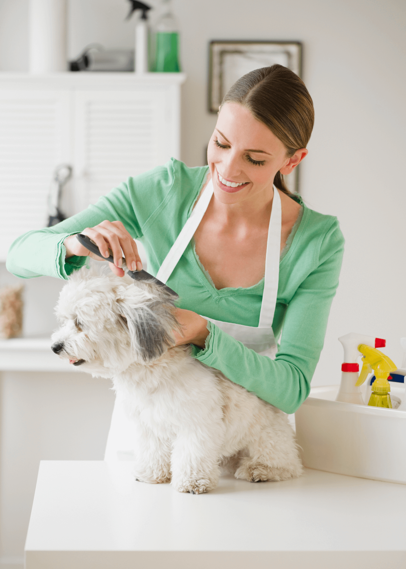 "I love how the groomer gently brushes my coarse hair, then bathes me without making me nervous. There's no discomfort – it justs feels nice. I leave the salon without biting anyone and I feel good about myself."